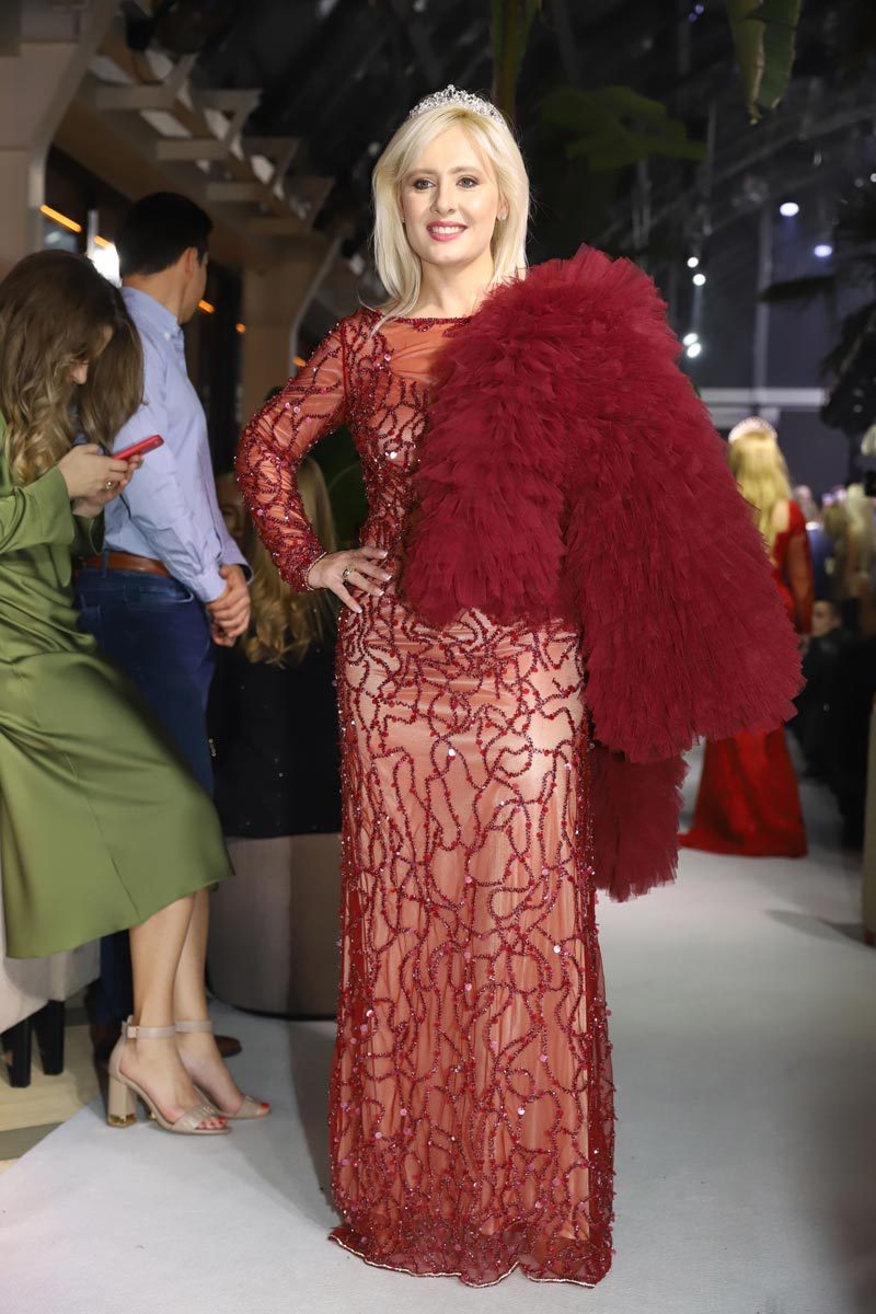 В этот вечер на подиум вышли более пятидесяти известных женщин в качестве моделей, именно они презентовали новую грандиозную и неповторимую коллекцию дизайнера. На показе был установлен Рекорд Украины на САМОЕ дорогое платье за всю историю страны, стоимостью 500 000$, так как оно украшено сотнями бриллиантов весом на 109, 35 карат бриллиантов, а также на этом платье сверкают 1 000 000 камней Swarovski.