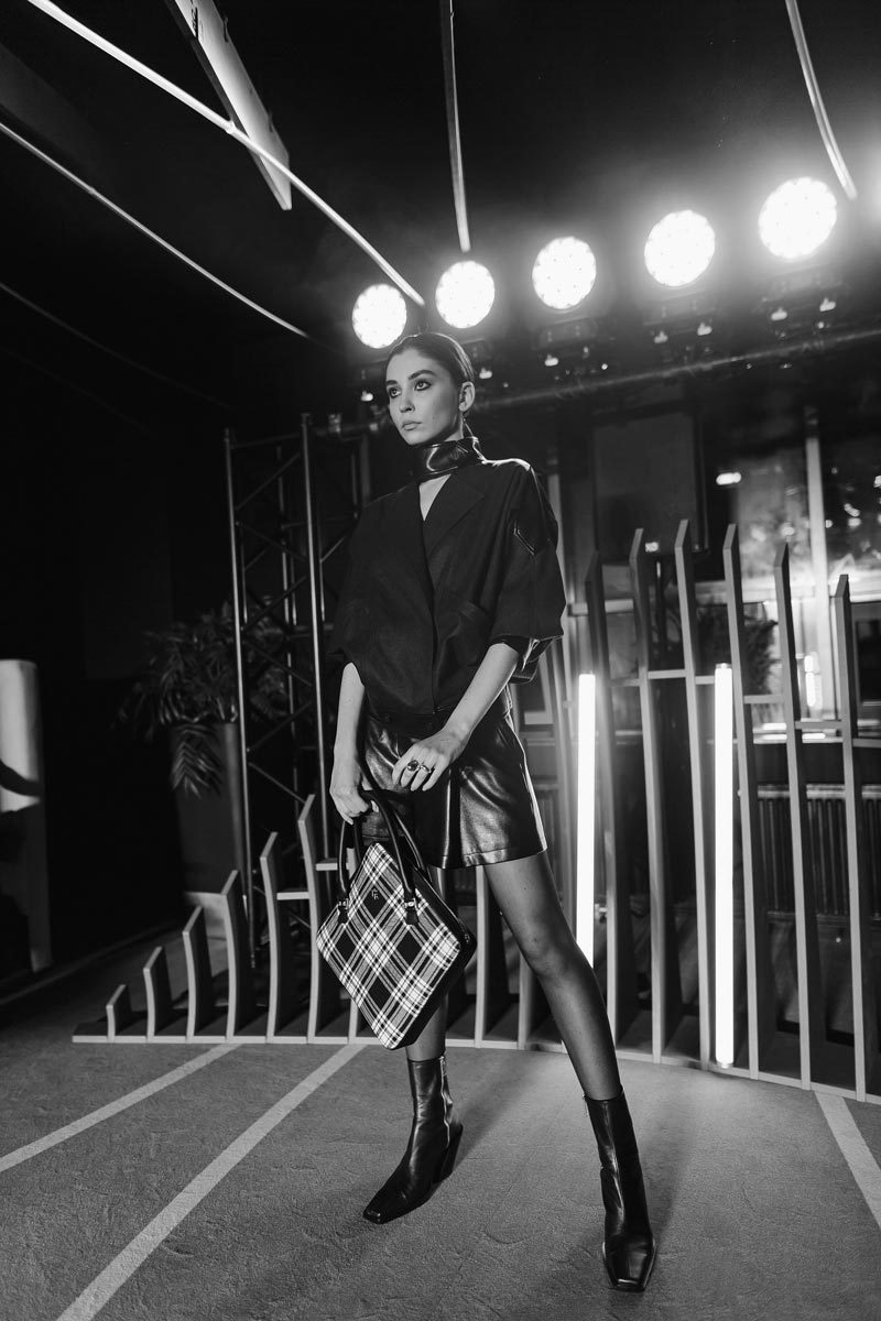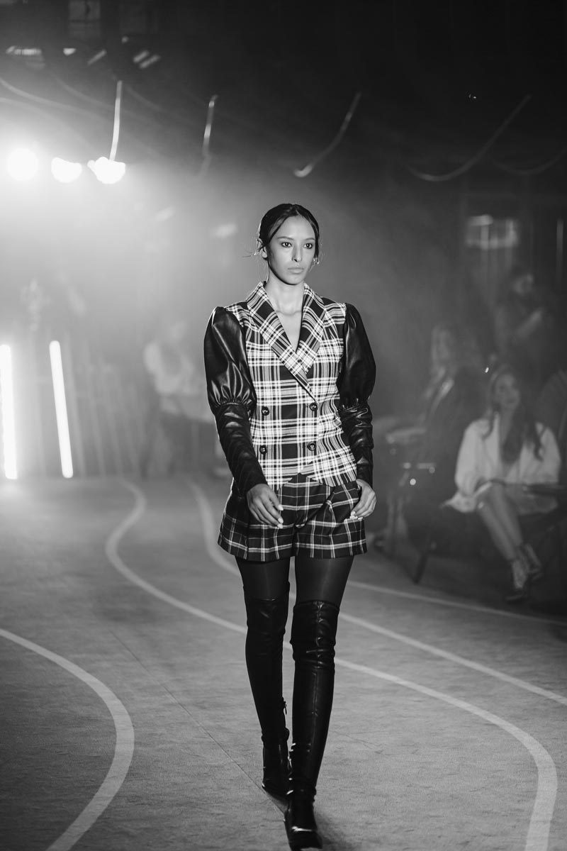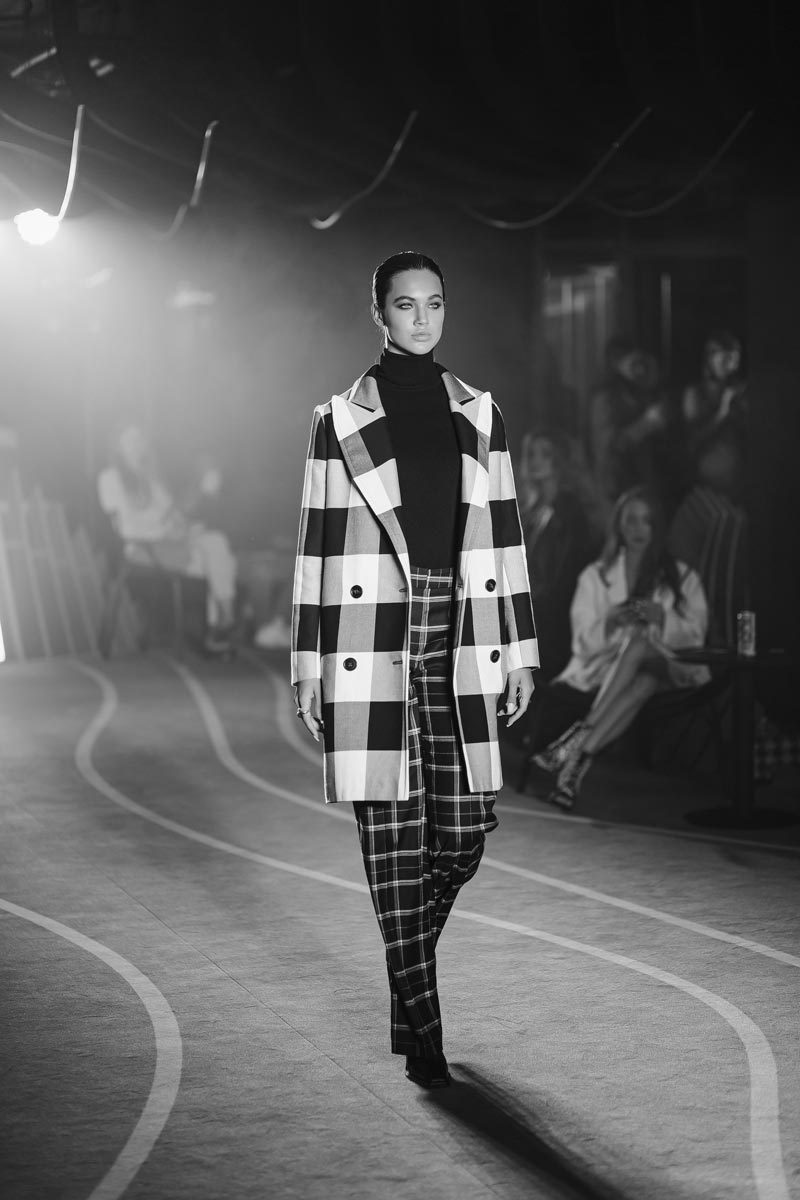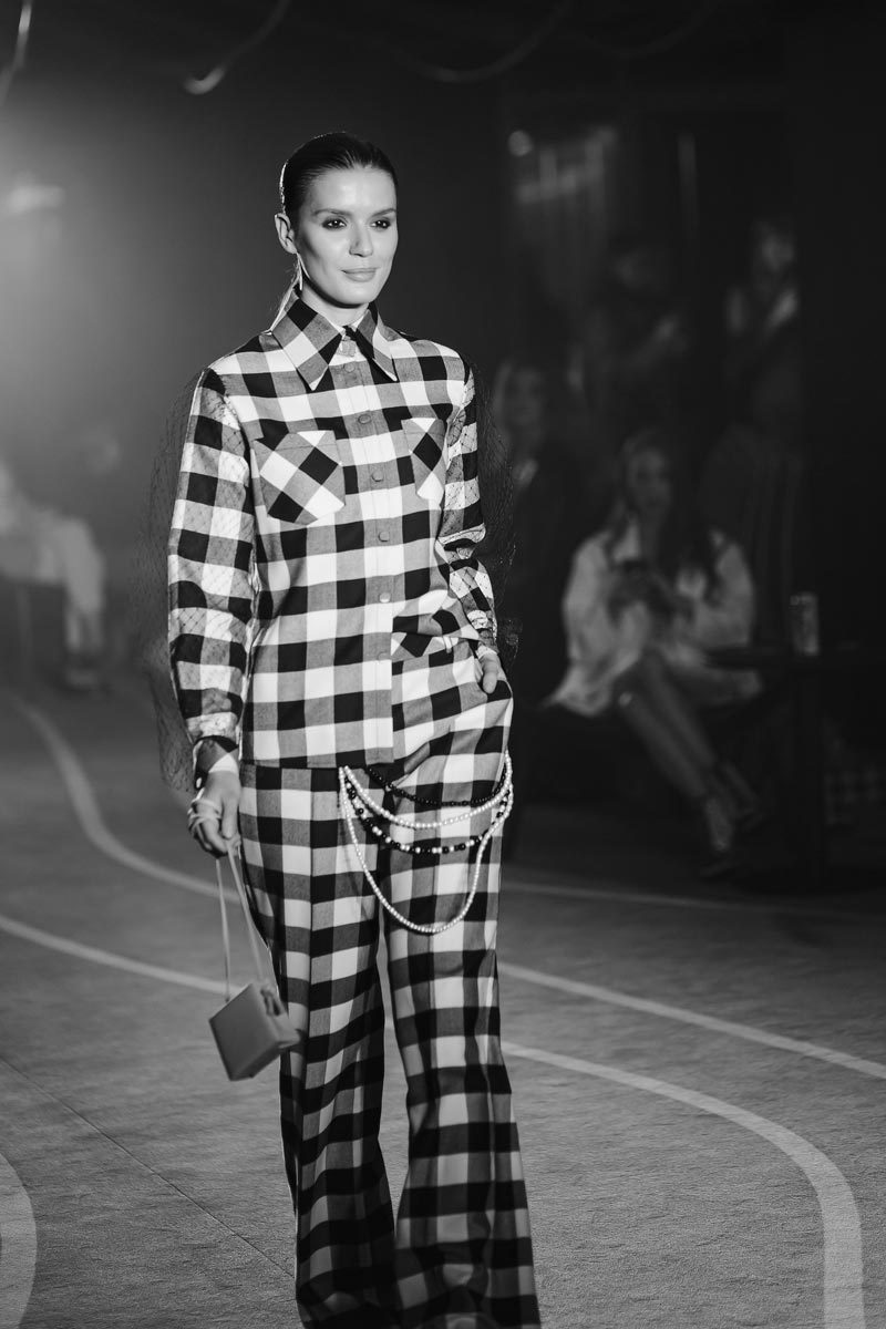 В коллекции Blitz главным принтом стала черно-белая клетка, в которую вошли монохромные костюмы они же являются бестселлером бренда, “Маскулинность встречается с женственностью и черный переплетается с белым” – главный девиз коллекции.