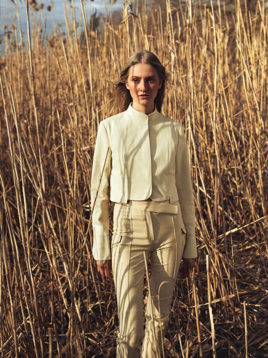 «Перенося старые элементы в виде самой ткани, рукавов, подкладки, погон, значков, пуговиц на новые вещи, мы также перенесли воспоминания из прошлого в настоящее», — рассказывает о работе над коллекцией основательница бренда Катя Бахирка.