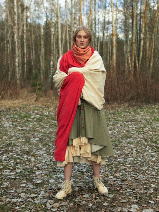 Для создания концептуальной коллекции Red Thread использовали винтажную форму австрийской, английской, советской армии и деконструировали ее. Без привязки к истории одной страны или культуры получилось вложить в каждый предмет коллекции важные общечеловеческие смыслы: с одной стороны силу и уверенность, а с другой — страх потери и ценность жизни.